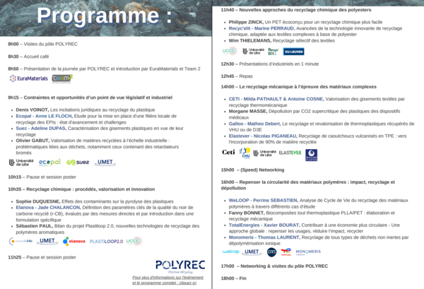 À l'occasion de la Journée Mondiale du Recyclage, le 18 mars 2026, POLYREC et l’Institut Michel-Eugène Chevreul ont organisé une journée dédiée aux thématiques du recyclage, éco-conception et de l’analyse de cycle de vie des polymères.