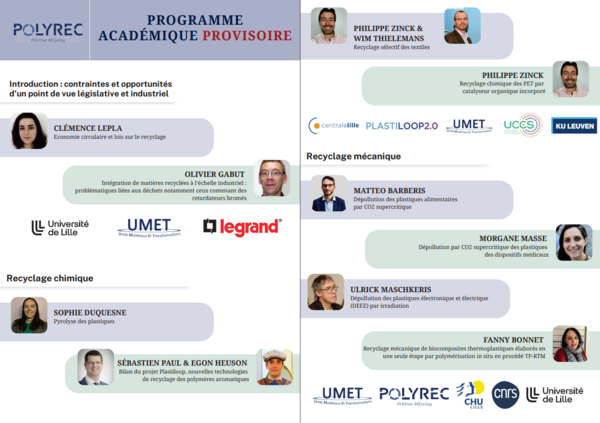 Une journée dédiée aux thématiques du recyclage, de l’éco-conception, de l’économie circulaire et de l’analyse de cycle de vie des polymères (plastiques, caoutchouc, résines, textiles…), visant à favoriser les échanges et collaborations entre acteurs académiques et industriels sur ces thématiques.